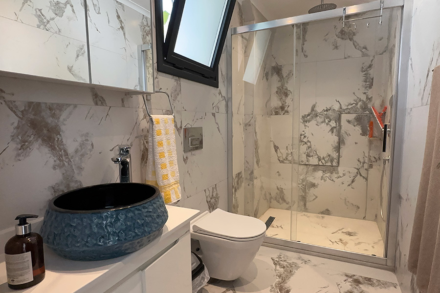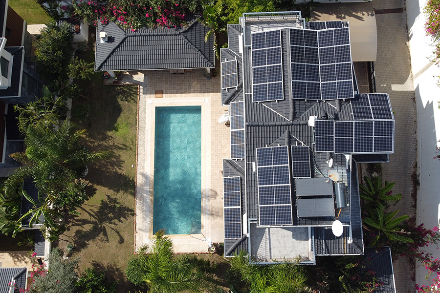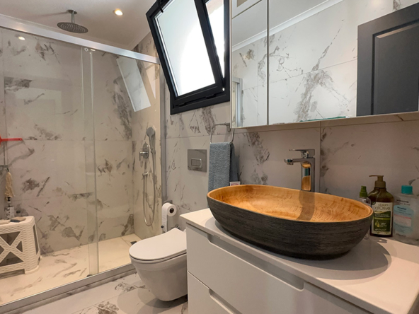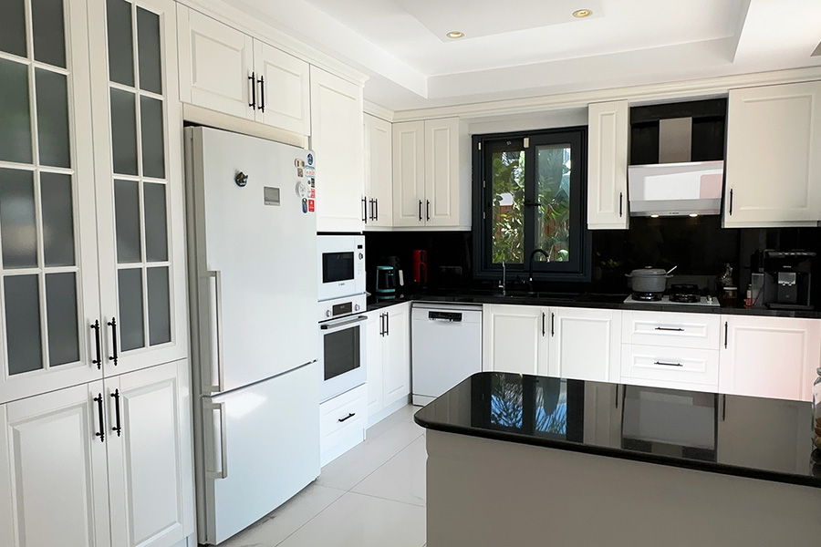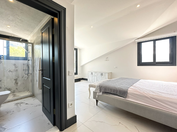 Energy Independence & Comfort: A commitment to modern living is evident in the energy-efficient features. The villa is equipped with a full solar energy and battery system, promoting sustainability and reducing utility costs. Year-round warmth is guaranteed by a sophisticated underfloor heating system, complemented by automatic roller shutters for security, insulation, and light control.